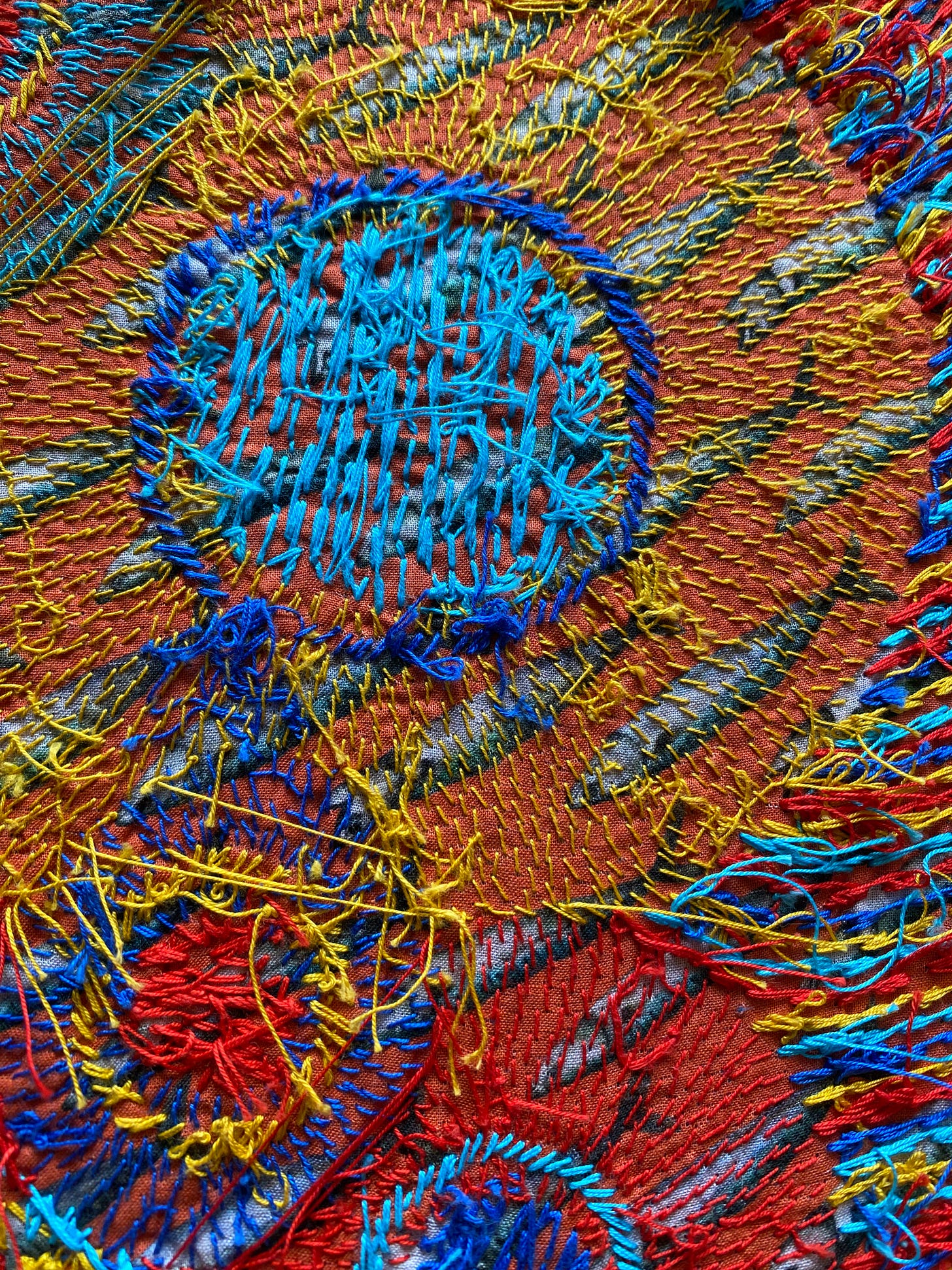 I used to use naturally dyed thread once upon a time, but I think I’ve finally arrived at just using these really bold colors instead. My work is not gentle, and these colors feel right.