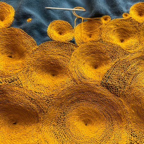 It’s not a new technique, it’s just the blanket stitch, something I happened upon while experimenting and considering the geometry of the stitch itself.