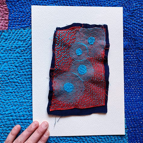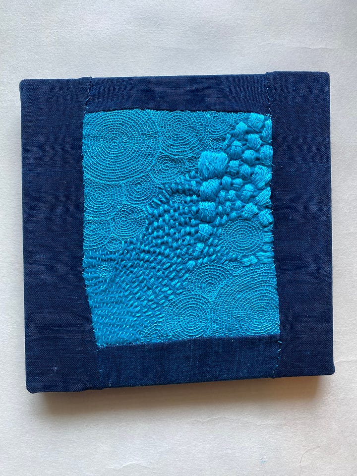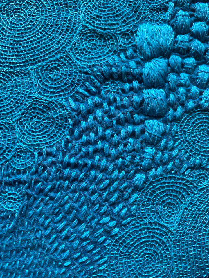 Normally I enjoy thinking of titles for my work, but nothing came to me on this one. It’s 40x31 cm, so a bit big for me. I’m still obsessed with this turquoise Yokota Daruma thread.